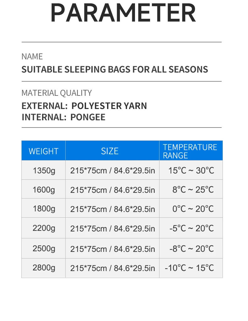 Sleeping Bag Temperature Scale Category: Spring and Autumn Sleeping Bag